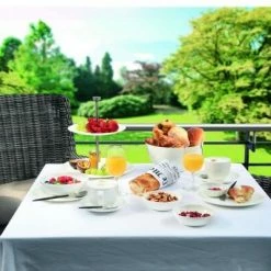 Geschirr der à Table Serie ist spülmaschinenfest und mikrowellengeeignet.