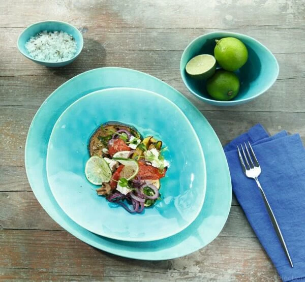 Sonne, türkisblaues Wasser, Strand…à la plage heißt nicht umsonst ‚an den Strand’, denn die aquamarinblaue ASA-Kollektion versprüht Urlaubsfeeling pur! Mit à la plage wirkt jedes Gericht noch farbenfroher und frischer!