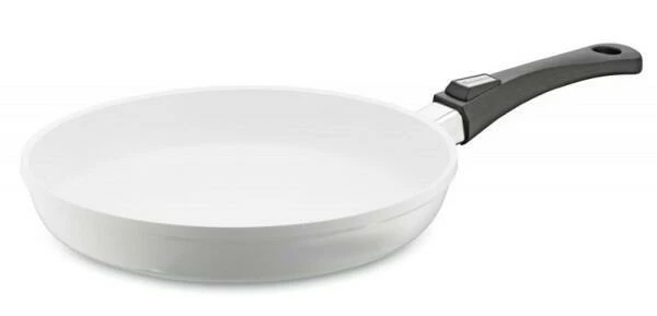 Professionell, einzigartig und atemberaubend schön! Die absolute Spitzenklasse: Hochwertigster Aluminiumguss mit in einem patentierten Verfahren in Schallgeschwindigkeit aufgespritzten Edelstahlboden, für eine überlegene Induktionstechnologie und ideale Wärmeverteilung. Dazu eine extrem kratzfeste und extrem hitzebeständige Keramikversiegelung in reinstem Weiß. Die angegossenen Griffe, aber auch der abnehmbare Pfannenstiel gewährleisten eine uneingeschränkte Backofeneignung. Ein weiterer Vorteil ist die Platzersparnis im Schrank. Schöner kann überlegene Technik nicht sein!