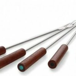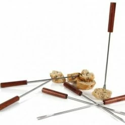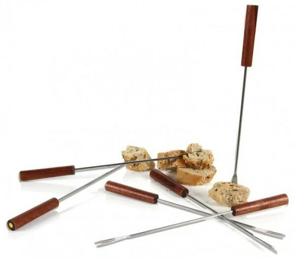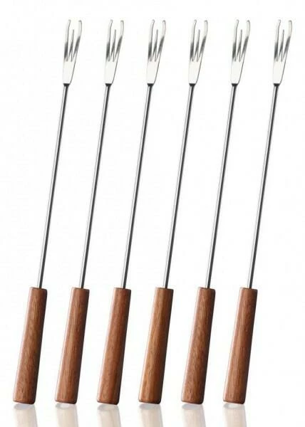 - Lieferumfang: 6 Edelstahl-Fonduegabeln mit Holz-Handgriff