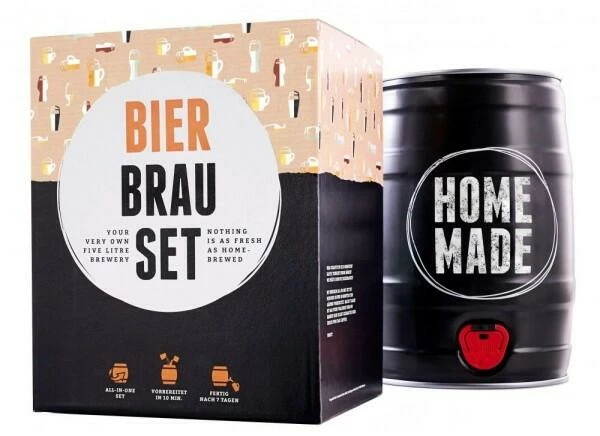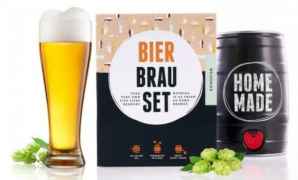 Mit dem Brauset für Weißbier von Braufässchen genießen Sie frisch gezapftes Bier aus eigener Herstellung! Im Set sind neben einem 5-Liter Fass, einem Druckventil und der Anleitung auch Malzextrakt, Hefe und Hopfen zum Bierbrauen enthalten.