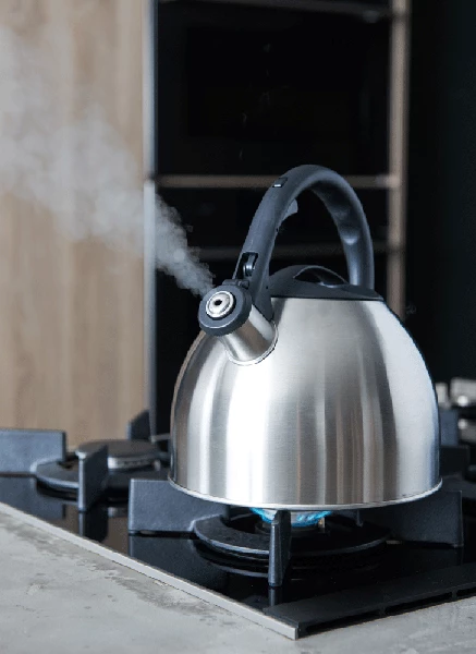 Aus hochwertigem matt gebürsteten Edelstahl gefertigt, eignet sich der Flötenkessel von Bredemeijer für verschiedene Wärmequellen wie Gas, Elektro und Induktion. Der Pfeifkessel lässt sich zudem leicht reinigen und glänzt optisch zusätzlich durch seine schwarzen Beschläge.