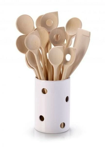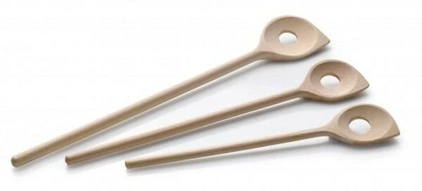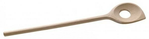 Continenta Kochlöffel spitz mit Loch aus Buche natur. Extrem hartes Holz mit hoher Materialstärke.