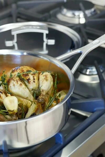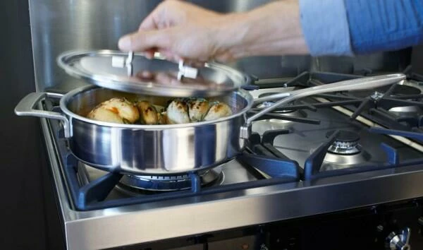 TriplInduc® für alle Herdplatten: Alle Demeyere-Produkte können im Ofen und auf den konventionellen Wärmequellen wie Elektrizität und Gas verwendet werden, eignen sich darüber hinaus aber auch für hilight, AGA, Ceran sowie Induktionskochplatten. Dafür hat Demeyere TriplInduc entwickelt, ein Material, das dafür sorgt, dass die Wärmequelle während des Kochvorgangs jeder Zeit gewechselt werden kann. Dank der ausgezeichneten magnetischen Eigenschaften ermöglicht TriplInduc bis zu 30% mehr Leistung mit Induktion. Außerdem verformt sich TriplInduc nicht und sorgt dafür, dass Böden auch nach Jahren ständigen Gebrauchs noch eben bleiben.