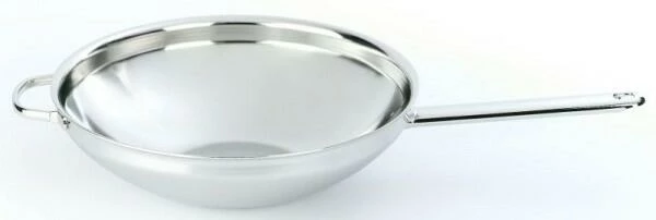 Für den Wok verwendet Demeyere die 7Ply-Mehrschichtentechnologie: Der Gebrauch von 2,3 mm dickem, mehrschichtigem Material mit einem wärmeleitenden Kern aus Aluminiumschichten und Edelstahl an der Innen- und der Außenseite des Woks ist ideal. Der Wok wird in der Mitte sehr heiß und zum Rand hin langsam kühler, aber doch heiß genug, um die darin geschwenkten Zutaten weiter zu garen. Durch den Gebrauch der 7Ply-Mehrschichtentechnologie und durch die optimale Materialdicke ist die Wärmeverteilung ideal gewährleistet und das Risiko des Anbrennens minimal. Eine Anti-Haftschicht ist nicht erforderlich und es kann ohne Probleme mit scharfen Gegenständen geschnitten, gerührt oder umgedreht werden.