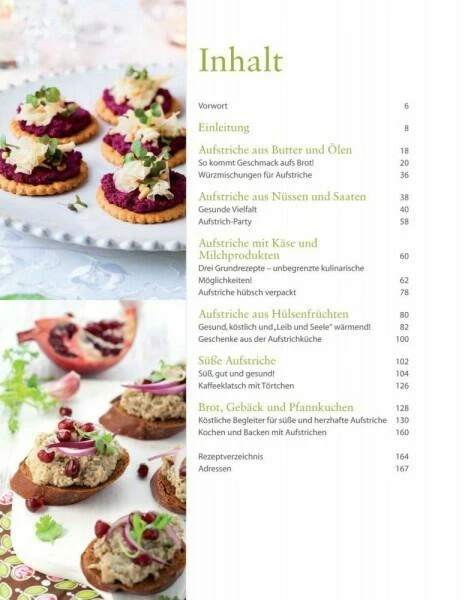 Radcke Antje: Feine Brotaufstriche – Vegetarisch und vegan. Dieses Buch ist ein modernes Brotaufstriche-Buch mit zeitgemäßen, auch mal trendigen, Rezepten, bei denen gute, natürliche Zutaten und Brote die Grundlage sind.