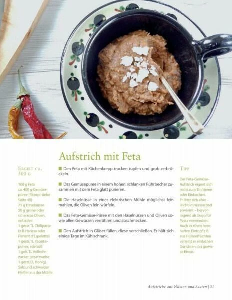 Eigenschaften des Kochbuchs Feine Brotaufstriche – Vegetarisch und vegan