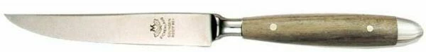 Eichenlaub Steakmesser Tafelgröße aus Eiche dunkel matt. Unverkennbar mit der zum Klingenrücken zeigenden Spitze. Stabil und mit scharfer Säge versehen ist das Eichenlaub Steakmesser prädestiniert für Fleischgerichte aller Art.