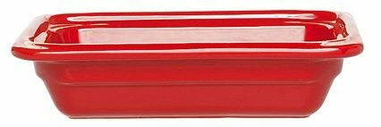 Emile Henry GN-Schale rechteckig aus Keramik 1/4 in rot. Professionelle Gastronorm-Keramik mit 65 mm Tiefe.