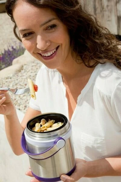 Die Speiseeinsätze sind ideal für Babynahrung und lassen sich einfach herausnehmen und zum Aufwärmen in die Mikrowelle stellen. Wichtig: Die Speiseeinsätze vorher aufdrehen!