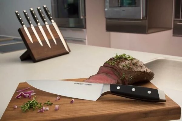 - Messer niemals ungeschützt in einer Schublade – womöglich noch zwischen anderem Küchenwerkzeug – lagern. Zur Aufbewahrung wird ein Messerblock oder eine Magnetleiste empfohlen.