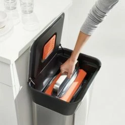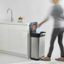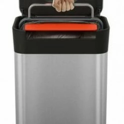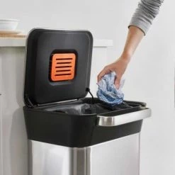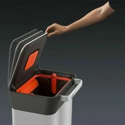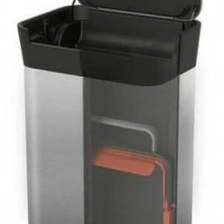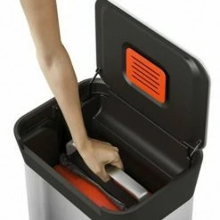 Der Abfallsammler Titan in Edelstahl von Joseph Joseph ist eine innovative Abfalllösung mit einem patentierten, hygienischen Abfallverdichtungssystem. Das System ermöglicht es, das mehr als dreimal so viel Abfall wie bei einem handelsüblichen Haushaltsabfalleimer von ähnlicher Größe aufgenommen werden kann. Durch die Verdichtung des Abfalls muss der Abfalleimer seltener entleert werden. Zusätzlich werden weniger Müllbeutel benötigt. Der Abfallsammler Titan verfügt über ein reißfestes Design sowie austauschbaren Geruchsfilter im Deckel, wodurch Mülltüten nicht überdehnt oder punktiert sowie unangenehme Gerüche neutralisiert werden. Er kann mit standardmäßigen Müllbeuteln verwendet werden. Das patentierte Design von Titan sorgt dafür, dass während des Zusammenpressens nur die Innenseite des Plastikmüllbeutels mit dem Abfall in Berührung kommt. So bleiben sowohl Ihre Hände als auch der Abfalleimer sauber.