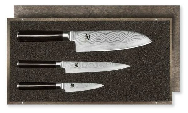 - Set bestehend aus Shun Classic Officemesser 9 cm, Allzweckmesser 15 cm und Santoku 18 cm