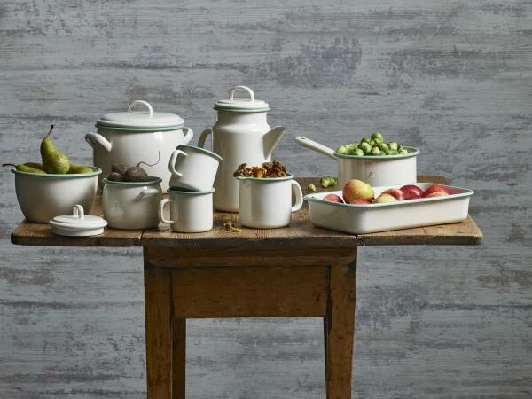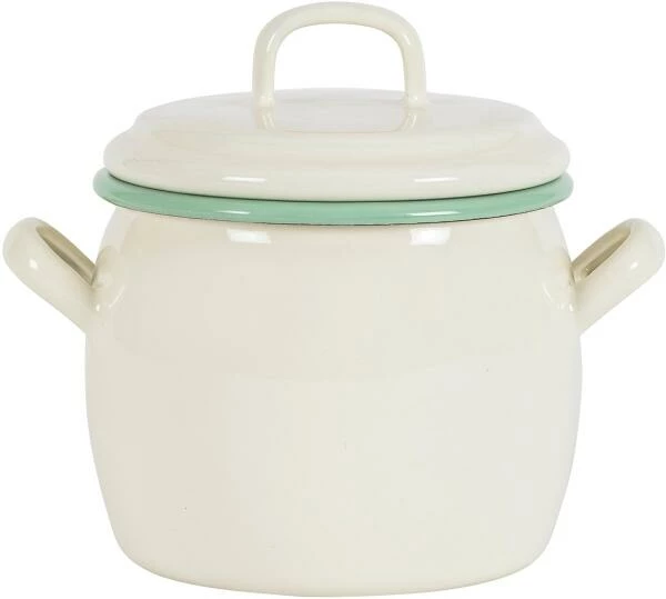 Der große Topf aus Emaille eignet sich für alles, was beim Kochen ausgewogener Mahlzeiten anfällt. Besonders Eintopf oder Suppen können in einem Topf von Anfang bis Ende zubereitet und anschließend direkt stilsicher serviert werden. Der bauchige Topf in seiner 700 ml Variante eignet sich ebenfalls hervorragend zum Servieren bei Tisch. Vor allem Nudeln, Kartoffeln und Gemüse kann auch hier ganz praktisch direkt im Topf zubereitet und anschließend dekorativ präsentiert werden.