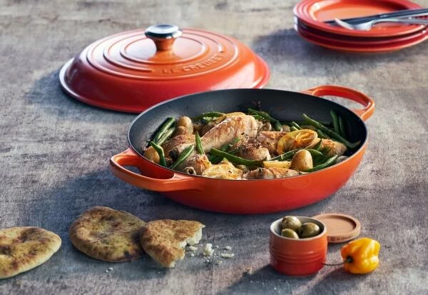 Die neue Serie Signature von Le Creuset kombiniert neue mit bewährten Produkteigenschaften. Die Signature Produkte verfügen über eine speziell entwickelte strapazierfähige Innen-Emaille, die eine hohe Widerstandskraft gegen Abnutzung aufweist. Außerdem sorgt die helle und lebendige Farbe der Innen-Emaille für ein schönes Aussehen. Alle Signature Produkte verfügen über große Griffe, wodurch ein leichter, sicherer Transport vom Herd in den Backofen und von der Küche zum Esstisch gewährleistet wird. Der ergonomische Knopf aus gebürstetem Edelstahl besticht nicht nur durch sein formschönes Design, sondern auch durch seine Hitzebeständigkeit bis zu 260 °C. Das moderne, frische Aussehen von Signature wird von einem Deckel mit deutlicher Markenerkennung komplettiert, in dessen Rand Stabilisierer integriert sind, die verhindern, dass der Deckel wackelt. Somit ist für mehr Sicherheit gesorgt.