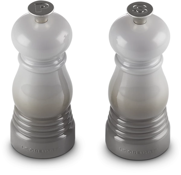 Le Creuset Mühlen Set klein in perlgrau. Die Mühlen mit erstklassigem Keramikmahlwerk.