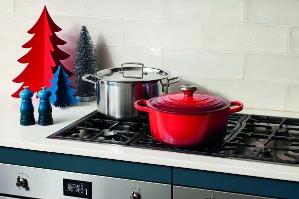 - Boden aus Edelstahlrahmen und Le Creuset Logo