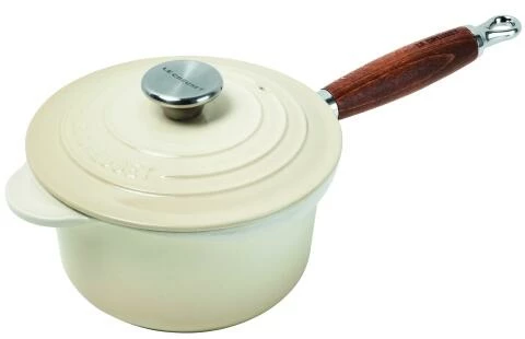 Le Creuset Profitopf mit Holzgriff in meringue. Der Profitopf aus Gusseisen ist ideal für alle Speisen, die einer intensiveren Aufmerksamkeit und viel Feingefühl bedürfen wie empfindliche Saucen und Cremes. Sie lassen sich in den Profitöpfen gleichmäßig erhitzen und auf konstanter Temperatur halten. Zusätzlich hat der Deckel ein spezielles Ventilationssystem, das ein Überkochen verhindert. Ein Schüttrand an beiden Seiten ermöglicht ein Ausgießen ohne Tropfen. Den Griff können Sie auch anfassen, wenn der Profitopf heiß ist.