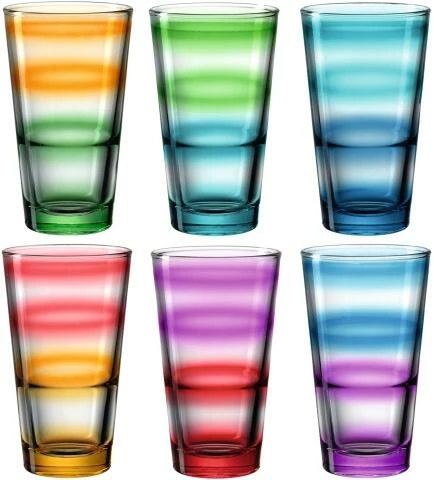 Ihren Alltag bereichern Sie mit diesem schönen Trinkglas aus der Serie EVENT. Es wurde lackiert und wirkt modern und frisch. Das konisch geformte Trinkglas stellt ein wahres Must-Have dar! Mit einem guten Gespür für die schönen Dinge zaubert LEONARDO noch mehr Abwechslung in Ihr tägliches Leben. COLORI ist LEONARDOS eigene Farbrange. Die Glasserien wurden mit einer langlebigen und hochwertigen Hydroglasur veredelt. Diese Lacke werden ausschließlich in Deutschland entwickelt und sorgen für eine hohe Widerstandsfähigkeit der Produkte im Alltagsbetrieb. Absolut lichtecht, modern und edel: Das verspricht COLORI. Absolut alltagstauglich: Das EVENT Trinkglas lässt sich stapeln und ist spülmaschinenfest! Sie erhalten mit diesem Angebot 6 farblich sortierte Trinkgläser. Für alle, die Wert auf Qualität legen – bestellen Sie am besten jetzt und verschönern Sie sich Ihr Zuhause mit diesem ansprechenden Trinkglas.