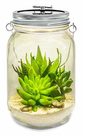 Lurch Solarglas catch the sun. Solarzellen im Deckel speichern tagsüber die Sonnenenergie, die später in Form von Licht abgegeben werden kann.
