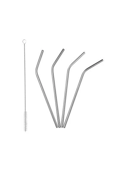 Im Set werden vier gebogene Edelstahltrinkhalme mit 21 cm Länge und einer passenden Reinigungsbürste geliefert. Alle Trinkhalme sind hitzebeständig, geschmacksneutral und spülmaschinengeeignet.