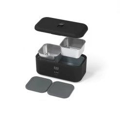 Sowohl MB Side Small als auch MB Side Large passen in die beheizbare Lunchbox MB Warmer von Monbento. Die Meal-Prep-Boxen aus Metall sind leicht und robust und sogar im Ofen zu verwenden. Die Silikondeckel garantieren einen luftdichten Transport ohne Auslaufen. MB Side ist frei von BPA und spülmaschinengeeignet.