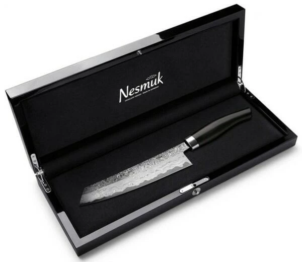 Nesmuk verbindet traditionsreiche Handwerkkunst mit modernster Technologie. Das Unternehmen aus Solingen entwickelt und fertigt Messer in höchstmöglicher Schärfe und setzt dabei auf Stahlsorten, Edel-Materialien und Technologien, die in der Schneidwarenindustrie noch nie zuvor verwendet worden sind – und genau das macht den Unterschied! Alle Messer werden unter dem Anspruch gefertigt, in ihrer Schärfe nicht überboten werden zu können und in jedem Anwendungsbereich den feinstmöglichen Schnitt zu ermöglichen. Die Produkte entstehen in mühevoller, mehrjähriger Detail-Arbeit. Alle Produkte sind mit praktischen und dekorativen Alleinstellungsmerkmalen ausgestattet und genießen den Ruf, jeweils die Besten in ihrer Kategorie zu sein! Sie sind zeitlos, funktional und von höchster Qualität. Es macht keinen Unterschied, ob das Messer links- und rechtshändig geführt wird.