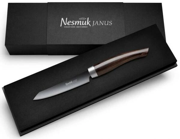 Nesmuk verbindet traditionsreiche Handwerkkunst mit modernster Technologie. Das Unternehmen aus Solingen entwickelt und fertigt Messer in höchstmöglicher Schärfe und setzt dabei auf Stahlsorten, Edel-Materialien und Technologien, die in der Schneidwarenindustrie noch nie zuvor verwendet worden sind – und genau das macht den Unterschied! Alle Messer werden unter dem Anspruch gefertigt, in ihrer Schärfe nicht überboten werden zu können und in jedem Anwendungsbereich den feinstmöglichen Schnitt zu ermöglichen. Die Produkte entstehen in mühevoller, mehrjähriger Detail-Arbeit. Alle Produkte sind mit praktischen und dekorativen Alleinstellungsmerkmalen ausgestattet und genießen den Ruf, jeweils die Besten in ihrer Kategorie zu sein! Sie sind zeitlos, funktional und von höchster Qualität. Es macht keinen Unterschied, ob das Messer links- und rechtshändig geführt wird. Zusätzlich bietet Nesmuk eine Vielzahl an praktischen Zubehör zum Schärfen, Aufbewahren, Pflege sowie Arbeiten wie z.B. Streichriemen, Messerhalter und Schneidbretter an.