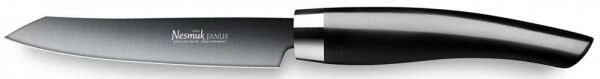 Dieses Officemesser aus der Serie Janus verbindet das handwerkliche Können und die langjährigen Erfahrungen von Nesmuk mit modernsten Materialien und Fertigungsmethoden. Die hochwertige DLC-Beschichtung zeichnet sich durch enorme Härte (2.300 Vickers), niedrige Reibwerte und hohe Haftfestigkeit aus. Die Klinge aus rostbeständigem Hochleistungsstahl mit Niobanteil und Klingenhärte von 60 HRC, der im Klingenstahl trotz Rostfreiheit, Säure- und Kratzunempfindlichkeit für ein sehr feines Gefüge sorgt, ermöglicht eine lange Schneidhaltigkeit. Die massive Messerzwinge aus gebürstetem matten Edelstahl und der formschönen Griffe aus Edelholz unterstreichen die handwerkliche Qualität. Die kurze Klinge des Officemesser Janus von Nesmuk ist perfekt zur Vor- und Zubereitung, Putzen oder zum Schälen von z.B. Obst und Gemüse geeignet. Geliefert wird das Messer in einer hochwertigen mattschwarzen Schatulle und ist die perfekte Wahl für Vor- und Zubereitungsarbeiten.