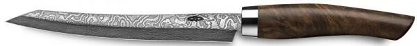 Kaum ein anderes Messer drückt Ursprung und Konstanz des handwerklichen Könnens so klar aus wie die handgefertigten Messer von Nesmuk. Die edle Messerklinge des Slicer-Messers aus der Serie Exklusiv C100 aus 120 Lagen handgeschmiedeten wilden Damast und leistungsfähigen Kohlenstoffstählen besticht mit einem herausragenden Härtegrad von 62 – 63 HRC und sorgt somit für eine außergewöhnliche Messerschärfe und Schnitthaltigkeit. Das einzigartige Damastmuster macht jede Klinge und damit jedes Messer zu einem Unikat. Zusätzlich wird die Klinge durch eine spezielle, hochwertige NPC-Glasbeschichtung vor Rost und Anlaufen geschützt, die weltweit nur Nesmuk bietet. Dadurch benötigen die Messer keinen speziellen Pflegeaufwand. Geliefert wird das Messer in einer mattschwarzen Holzschatulle und eine hochwertigen Ledersteckscheide. Die Ledersteckscheide schützt den Nutzer vor Verletzungen und die Schneide vor Beschädigung und Abstumpfung.