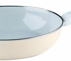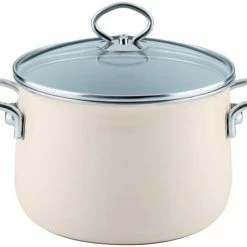 Die Töpfe überzeugen durch eine ideale Kombination verschiedener hochwertiger Materialien. Die Emaille ist schnitt- und kratzfest, leitet die Wärme gleichmäßig und schnell weiter und ist dank porenloser, glatter Oberfläche leicht zu reinigen sowie aromaneutral. Die Design-Griffe aus Edelstahl sind praktisch und auch ohne Handschuhe zu berühren. Dank des Glasdeckels ist das Kochgut leicht und einfach im Auge zu behalten. Die Ausnahme bildet der Griff der Pfanne, der besteht aus einem klassisch weißen Kunststoffgriff.