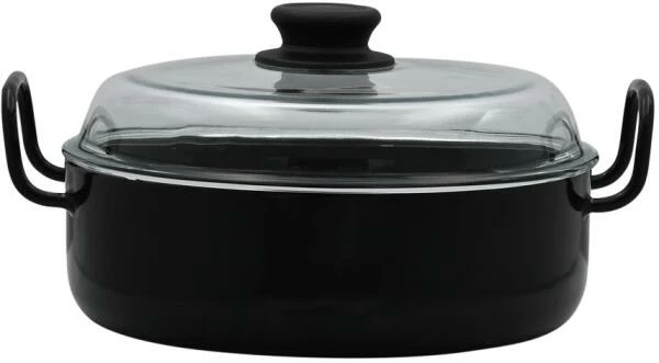 Riess Omas Schmorpfanne aus Schwarzemaille mit Deckel. Zum Braten, Schmoren und Dünsten von Gemüse oder Fleisch. In 2 Größen erhältlich.