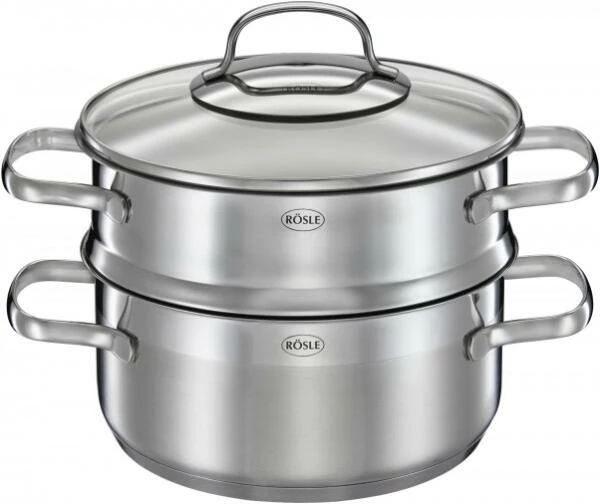 Rösle Dämpfer ELEGANCE. Mit einem Durchmesser von 20 cm. Geeignet für Keramik-, Elektro-, Gas- und Induktionsherd sowie Backofen.