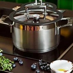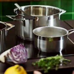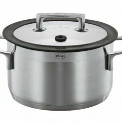 Die Kochtöpfe der Serie „Silence“ von Rösle bestehen aus 18/10 Edelstahl und einem bruchresistenten, bis zu 200°C temperaturbeständigem Aroma-Glasdeckel mit Silikoneinfassung. Alle Töpfe verfügen über einen gekapseltem Sandwichboden und ergonomisch gestaltete Edelstahlgriffe.