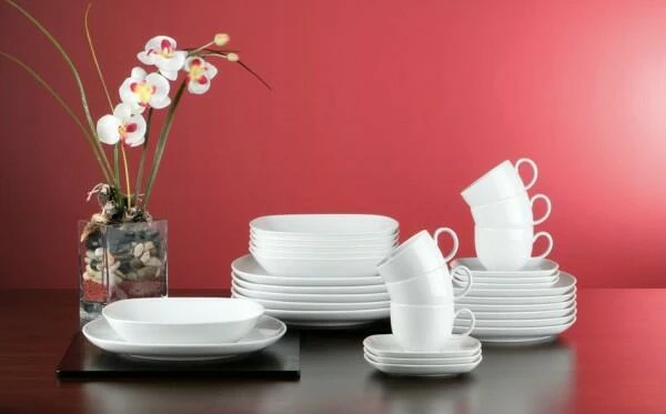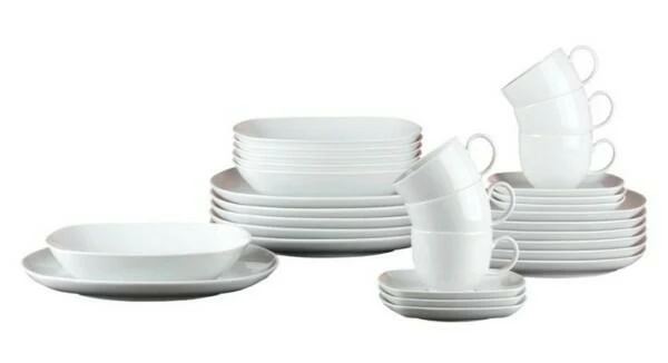 - Zusammensetzung: 6x Teller tief eckig 21 cm, 6x Teller flach eckig 26 cm, 6x Teller flach eckig 20 cm, 6x zur Kaffeetasse 0,21 l, 6x Kaffeeuntertasse rund 14,5 cm