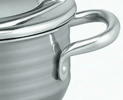 - Stabile, Ergonomische Griffe aus poliertem Edeltstahl: Sicher in der Handhabung. Hitzeisolierend. Backofenfest.