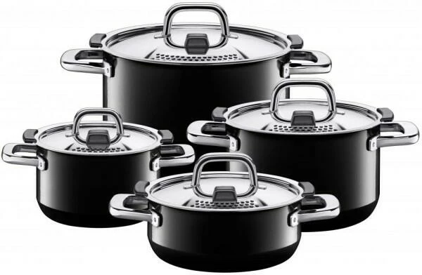Silit Kochtopf-Set Nature Black, 4-teilig. Der Clou der Töpfe ist der Edelstahldeckel Control Lid mit raffinierter Abdampf- und Abgießfunktion – für noch mehr Perfektion und Sicherheit beim geschmacksechten Zubereiten Ihrer Speisen.