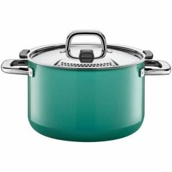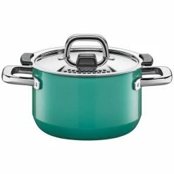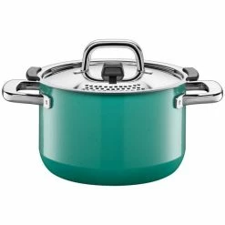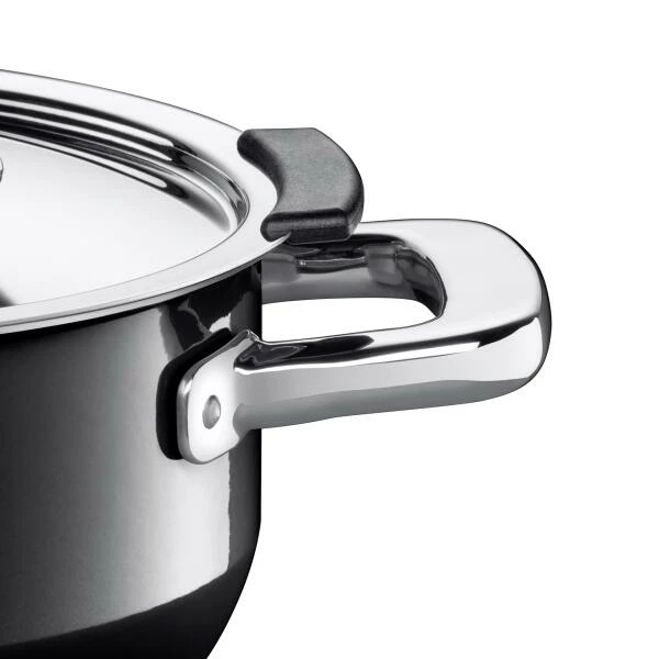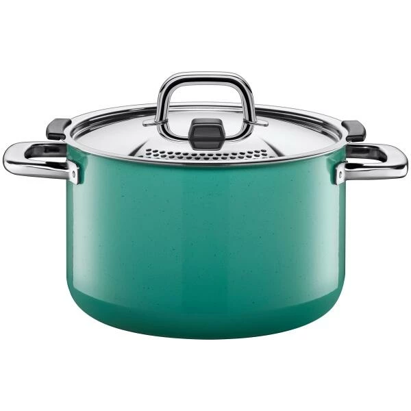 Für die Farben dieser Silit Topfgeschirr-Serie ließ sich Designer Peter Ramminger von der Natur inspirieren: Natürliche Farben schenken Fleisch- und Bratentöpfen ihre originellen Töne. Gekrönt werden die Töpfe der Silit Nature Kollektion von einem Edelstahldeckel mit dem Namen Control Lid: Er besitzt eine perforierte Öffnung, die sich mithilfe eines Schiebersystems leicht öffnen und schließen lässt. Nicht nur Dampf entweicht so kontrolliert, auch Flüssigkeit gießen Sie mit aufliegendem Deckel sicher ab. Die Hohlgriffe werden beim Kochen nicht heiß und liegen komfortabel in der Hand. Der ausgestellte Schüttrand erleichtert das Ausgießen von Saucen und Nudelwasser. Die Funktionskeramik Silargan® ist nickelfrei, schneid- und abriebfest, der durchgezogene Stahlkern leitet die Wärme schnell weiter und speichert sie lange. Sie passen auf jeden Herd inklusive Induktion und werden in der Spülmaschine wieder sauber. Das Schiebersystem des Deckels lässt sich leicht zerlegen und reinigen. Silit gibt