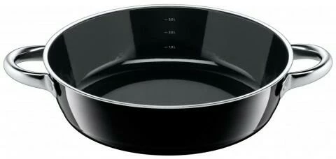 Silit Schmorpfanne Vitaliano Nero mit hohem Rand und praktischer Innenskalierung. Mit der Schmorpfanne von
