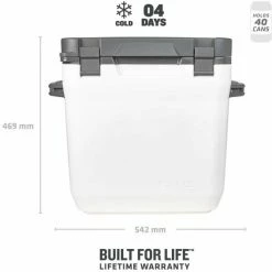 Der große Stanley ADVENTURE OUTDOOR COOLER überzeugt mit einer doppelwandigen Schaum-Isolation und hält den Inhalt bis zu 4 Tagen lang kalt. Die große Variante mit 28,3 Litern Fassungsvermögen ist auch für große 2l-Flaschen geeignet. Besonders stabilen Verschlüsse sorgen, zusammen mit einer Silikondichtung dafür, dass nichts ausläuft. Große Tragegriffe erleichtern den Transport. Der “Cooler” ist sehr robust und kann auch bequem als Sitz benutzt werden. Die Box besitzt einen auslaufsicheren Ablasshahn.