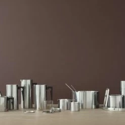 Bei der “Cylinda-line”-Serie von Stelton kommen alltägliche Gegenstände mit einem ganz besonders ikonischen Glanz auf dem Tisch. Die Serie ist bekannt für ihre Produkte, die durch eine gradlinige, zylindrische Form bestechen. Neben dem Serviertablett enthält die Reihe Servierkannen, ein Barset und auch Aschenbecher aus Edelstahl.