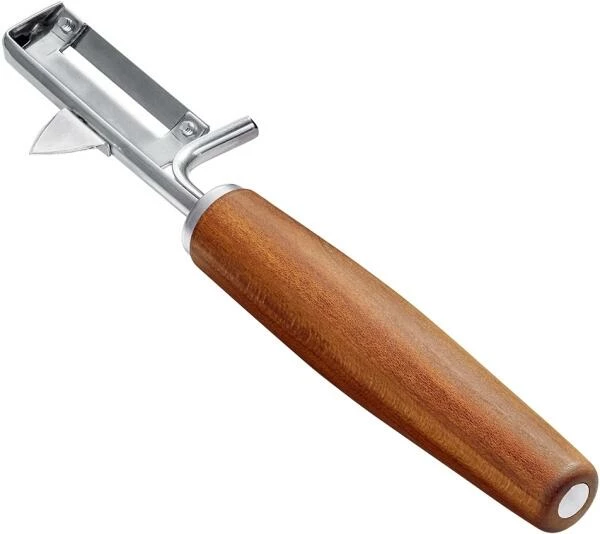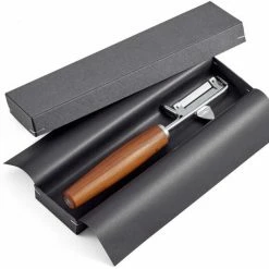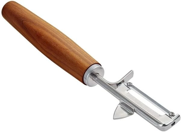 Klassischer Pendelschäler für Linkshänder zum sparsamen Schälen von Gemüse und Obst. Sollte die hochwertige Klinge einmal stumpf werden, ist sie austauschbar. Für die Serie Sense verwendet triangle regionales Pflaumenholz und unterstützt damit eine nachhaltige Holzwirtschaft und kurze Transportwege. Die Griffe werden im Sauerland gedrechselt, anschließend in Solingen fein bearbeitet und mit Funktionsteilen aus Edelstahl konfektioniert. Gefertigt wird selbstverständlich mit Ökostrom. Rostfrei. Klinge auswechselbar. Hergestellt in Solingen / Deutschland
