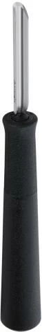 Die triangle Schnitzmesser A” werden beim Schnitzen von Obst, Gemüse, Käse oder auch Seife für die Herstellung von halbrunden und runden Formen eingesetzt. Mit ihrer Hilfe lassen sich z.B. Blütenblätter, Ornamente oder Fischschuppen leicht umsetzen. Je kleiner der Durchmesser dieser Werkzeuge ist, desto feiner sind die erzeugbaren Formen. Die Zahl hinter dem Buchstaben stehen somit für die jeweilige Größe des Messers. 1 ist das kleinste, 5 das größte Messer. Die Funktionsteile bestehen aus gehärtetem, rostfreien Stahl und bieten auch bei dauerhaftem Einsatz dauerhafte Schärfe. Die Griffe sind aus einer Kombination von hochwertigem Polypropylen und griffigem Santoprene (Softgrip) gefertigt. Sie verhindern ein eventuelles Abrutschen selbst bei nassen Händen und ermöglichen sicheres und ergonomisches Arbeiten. Ein separat erhältlicher speziell geformter Keramik-Wetzstein gewährleistet das konturgerechte Nachschärfen der Klingen. Rostfrei und spülmaschinengeeignet.”