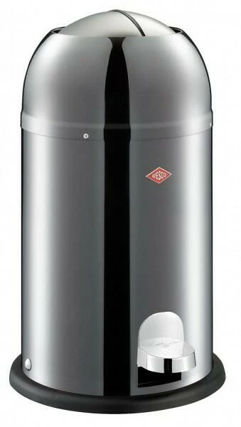 Wesco Kickmaster Junior in Edelstahl, 12 Liter. Das Besondere: Die Öffnung oben. Sie schließt geruchs- und geräuscharm und wird über eine robuste Tretmechanik bedient.
