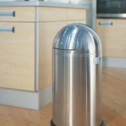 Basierend auf der amerikanischen Idee „großes Volumen – große Einwurfklappe” wurden Korpus und halbrunde Haube des Abfallsammlers Pushboy so aufeinander abgestimmt, dass die Proportionen perfekt zueinander passen, ergänzt um eine große und technisch stabile Einwurfklappe aus Edelstahl sowie stabile Griffe. Der Müll wird durch die grosse Edelstahl-Klappe eingeworfen, die für eine geruchsfreie Entsorgung des Mülls sorgt.