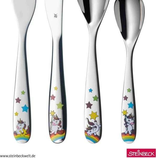 WMF Einhorn Kinderbesteck Set 4-teilig, Edelstahl.