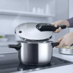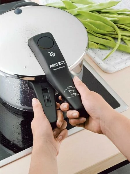 Der Schnellkochtopf mit dem Kniff im Griff: Die gesamte Technik sitzt kompakt verpackt im Griff, der zum Reinigen einfach abgenommen werden kann. Das übersichtliche Kochsignal zeigt zwei Ringe für die Garstufen und einen für die Restdrucksicherung. Mit Innenskalierung.WMF Perfect hat sich seit vielen Jahren durch das zeitlos klassische Design in Kombination mit moderner, technischer Ausstattung bewährt. Damit sparen Sie nicht nur Zeit, sondern auch Energie!