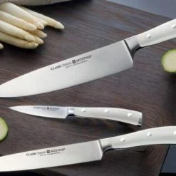Luxuriös und elegant – das ist Wüsthof Classic Ikon in crèmeweiß. Die Messerserie mit crèmeweißen Griffen trifft den Geschmack der Zeit. Ein Glanzpunkt in der Küche. Alle Messer sind hochwertig in silbernen Deckelschachteln verpackt.