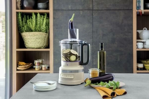 Ein Tausendsassa in der Küche mit vielfältigen Anwendungsmöglichkeiten. Der KitchenAid Food Processor raspelt Karotten, reibt Käse, püriert Kirchererbsen, hackt Zutaten spielend leicht und im Handumdrehen schneidet er dünne und dicke Scheiben. Oder mischen und kneten Sie Brotteig mit der Teigklinge in wenigen Minuten.