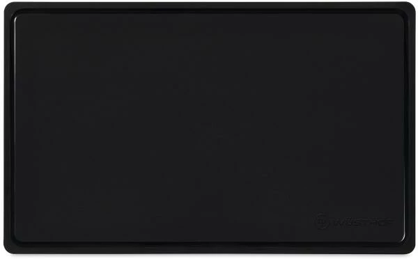 Wüsthof Schneidunterlage in schwarz. Diese praktische und angenehm dünne Schneidunterlage ist besonders funktionell und schont die Klingen ihrer Messer. Mit Saftrille.